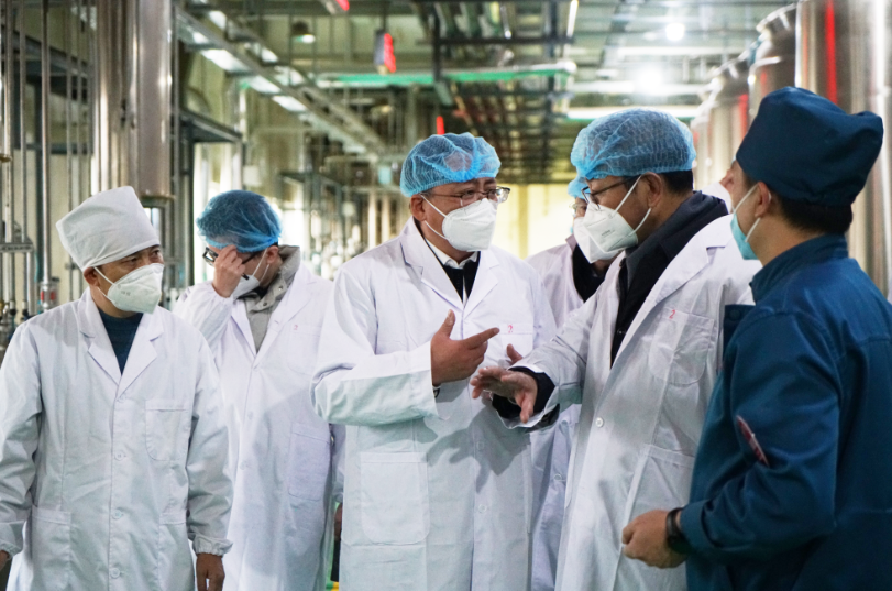 张世珍一行深入提取车间、制剂车间等地,实地调研了防疫物资生产和防疫感冒类药品保生产保供应工作,详细询问了佛慈制药2022年生产经营情况,特别是“国十条”实施以来,佛慈制药在防疫感冒类药品方面的生产保供情况。在听取了董事长石爱国的现场汇报后,张世珍予以充分肯定,并勉励佛慈制药要贯彻落实省委省政府的决策部署,切实担负国企责任,确保防疫感冒类药品不断供;确保今年的各项目标任务顺利完成,为甘肃省疫情防控和经济社会发展贡献佛慈力量。