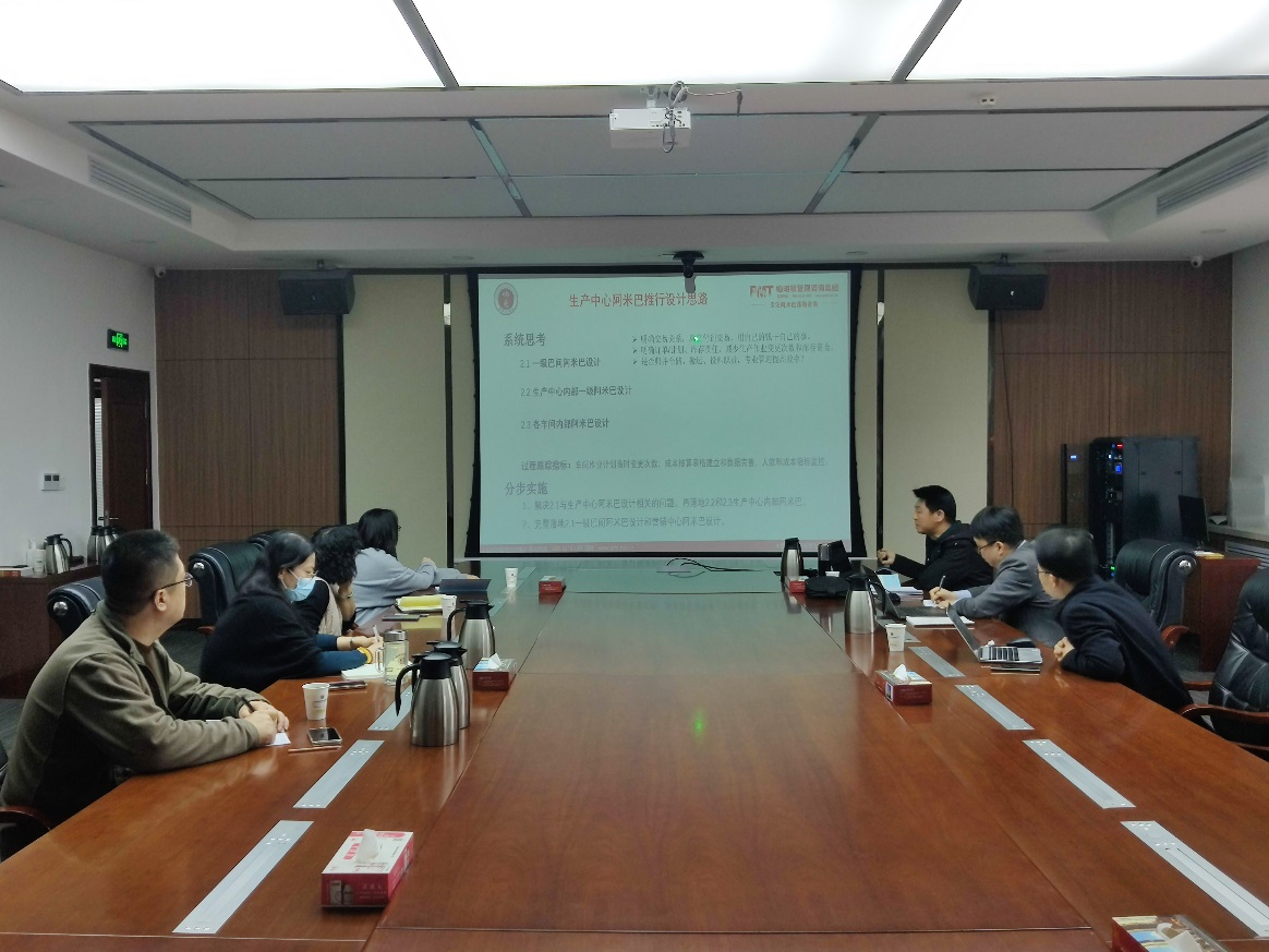 3月24日上午,项目执行经理、佛慈制药总经理助理王云洁组织项目运营组、项目顾问组召开了《阿米巴项目生产板块巴组织划分方案》讨论会。项目顾问组刘诗文老师向参会人员介绍了方案的整体思路、价值增值点、巴组织划分的核算逻辑等内容,方案基于对公司生产系统运行过程中实际问题的了解,针对物料转运流程及产线的梳理和车间、班组、工序内“料、工、费”等核算要素的识别,通过组织变革、经营方式变革来提升效能,实现增值。