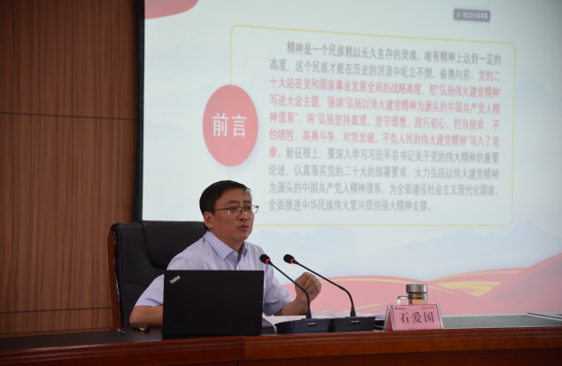 会上,石爱国同志以“弘扬红色精神,凝心聚力促发展”为主题,围绕“中国共产党人精神谱系的主要内容、中国共产党人精神谱系的关键词、把中国共产党人的精神转化为全面促进佛慈高质量发展的强大动力”三个方面作了专题党课宣讲报告。他指出,“坚持真理、坚守理想,践行初心、担当使命,不怕牺牲、英勇斗争,对党忠诚、不负人民”的伟大建党精神,是中国共产党的精神之源。百年来,中国共产党人弘扬伟大建党精神,形成了井冈山精神、长征精神、遵义会议精神、延安精神、西柏坡精神、红岩精神、抗美援朝精神、“两弹一星”精神、特区精神、抗洪精神、抗震救灾精神、抗疫精神等伟大精神,构筑起了中国共产党人的精神谱系。我们要传承红色基因、赓续红色血脉、弘扬红色精神,把红色精神运用到推动佛慈高质量发展的实际工作中去,一是用“井冈山精神”“抗洪精神”和“劳模精神”推动公司生产工作,二是用“焦裕禄精神”“改革开放精神”和“企业家精神”推动公司管理工作,三是用“遵义会议精神”和“两弹一星精神”推动研发创新工作,四是用“工匠精神”和“探月精神”推动公司药品质量检测工作,五是用“抗疫精神”推动安全生产工作,六是用“长征精神”“特区精神”“脱贫攻坚精神”推动营销工作。