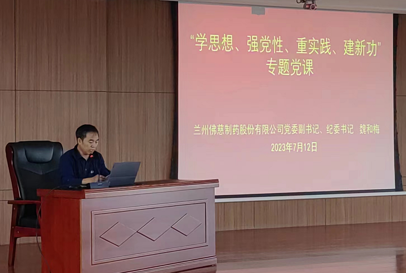 为深入学习贯彻习近平新时代中国特色社会主义思想和党的二十大精神,扎实推进主题教育和“三抓三促”行动走深走实,7月12日,兰州佛慈制药股份有限公司党委副书记、纪委书记魏和梅到所在党支部、包抓党支部和分管部门讲授“学习贯彻习近平新时代中国特色社会主义思想主题教育”专题党课。机关党支部、第三党支部、第四党支部、党委办公室和纪检监察部全体党员、发展对象、入党积极分子参加。