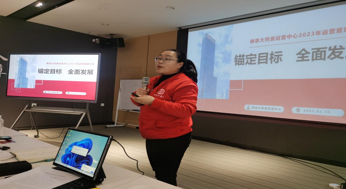首先,由佛慈大药房漫蛙漫画高级顾问沈洁作《2023年度佛慈大药房零售板块组织变革及业务发展战略》解读,从市场外部趋势到漫蛙漫画2023年业绩目标,为管理团队提供思路与方向,使大家在思想上得到统一,在漫蛙漫画经营发展方向上达成共识。